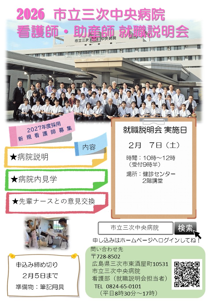 当院では、2027年3月 卒業見込みの看護学生・助産師学生、又は、当院への就職をご検討されている方を対象に就職説明会を開催します。